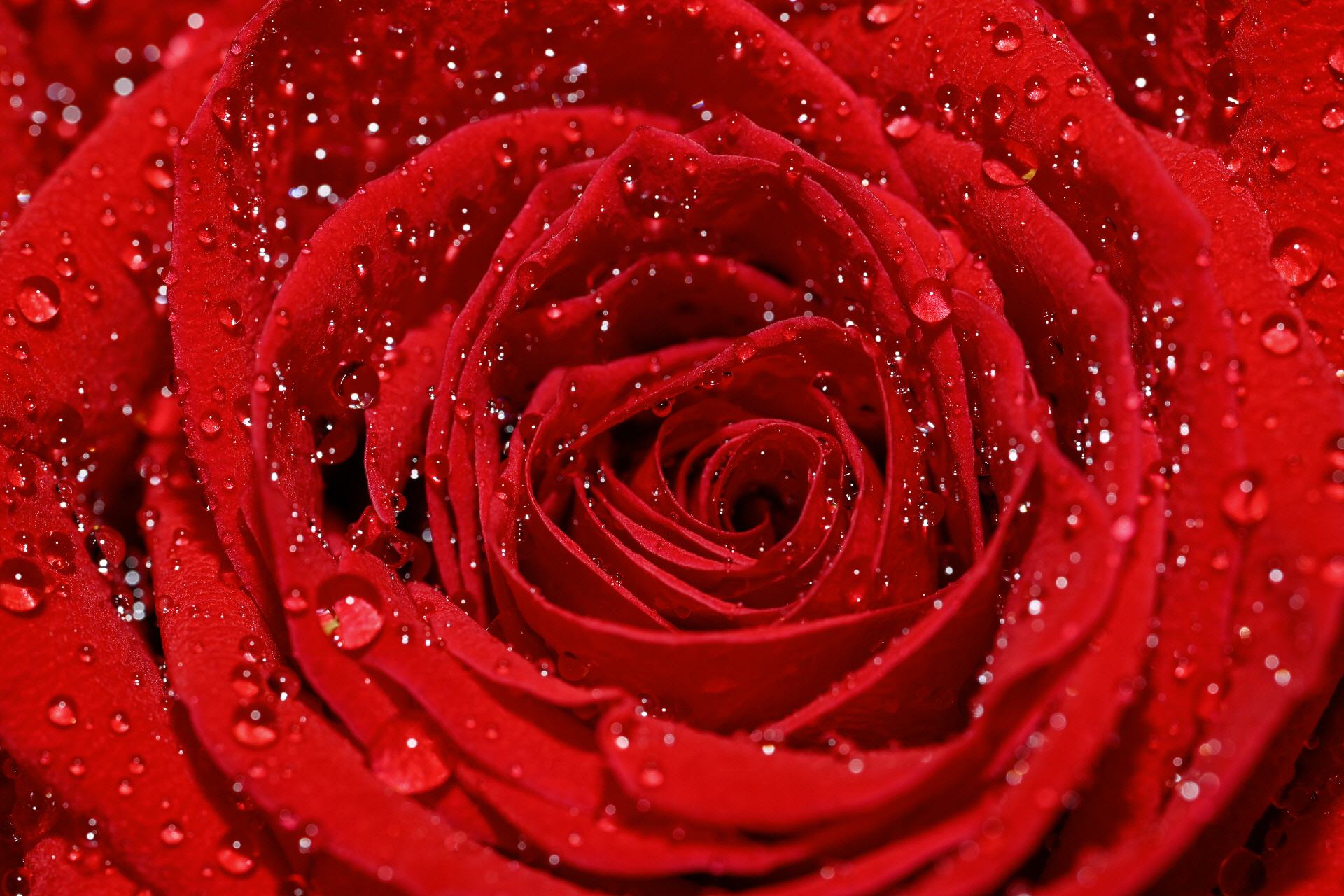 Una rosa roja intensa salpicada con gotas de agua muestra toda su belleza.