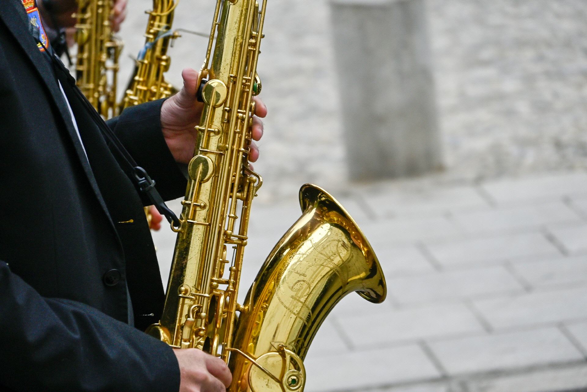 Un saxo en primer plano nos descubre detalles del instrumento.