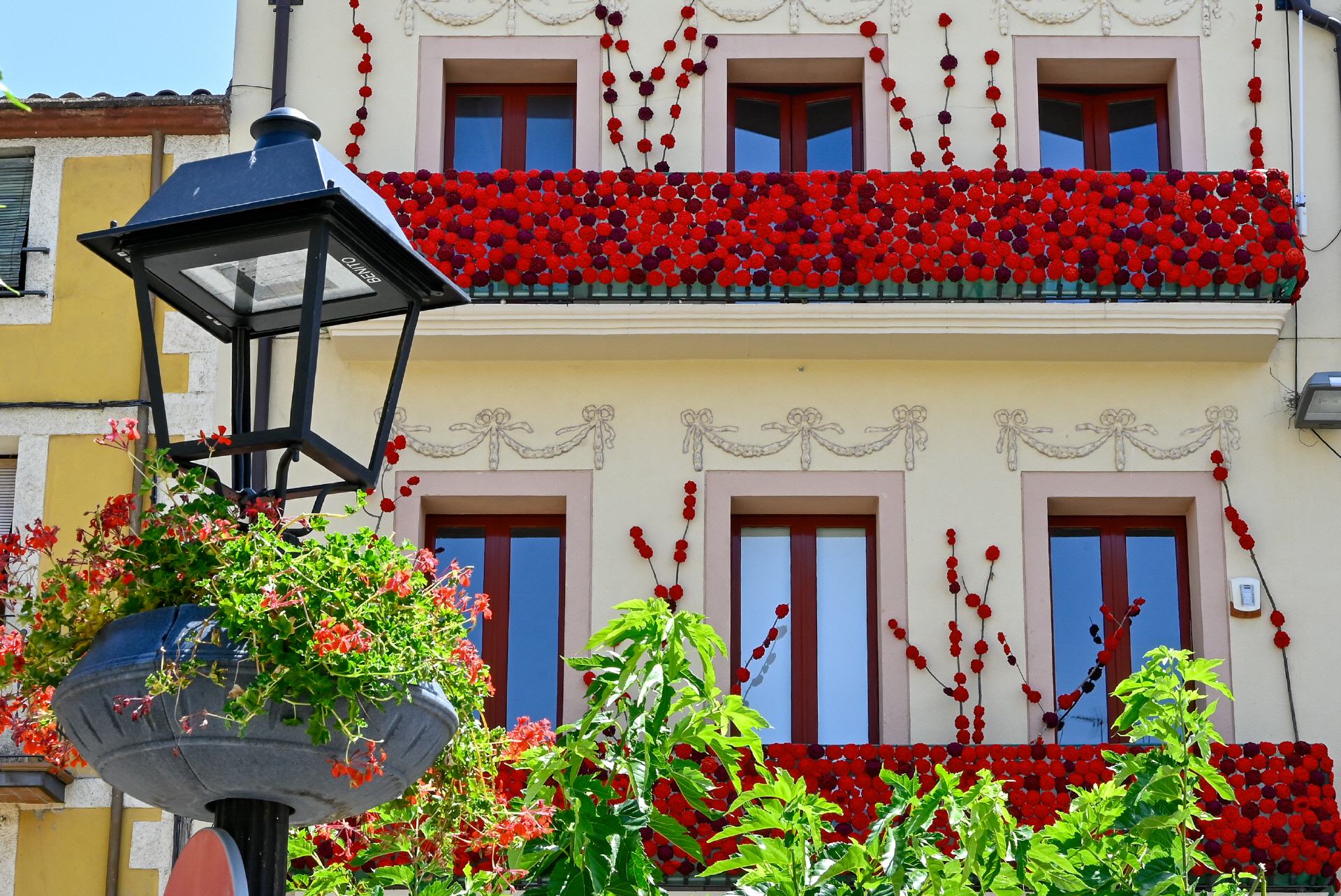 Con muchos detalles y luz. Así lucía un día de verano la fachada del ayuntamiento de Prades (Tarragona).